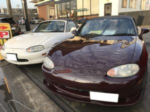 こんにちはプラチナムロード岐阜ブログにお越しいただきありがとうございます 入庫いたしましたNBロードスター整備して店頭展示いたします ピカピカのNBロドです 白